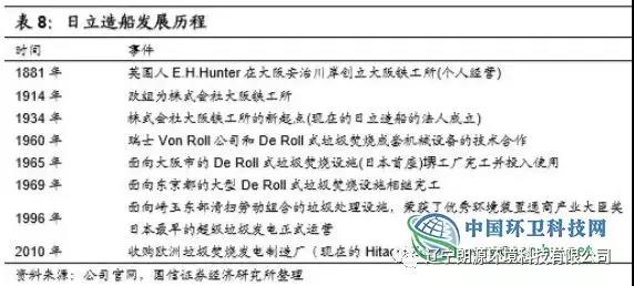 公司前身大阪安治川岸創(chuàng)立大阪鐵工所于1881年由一名叫E.H.Hunter的英國人創(chuàng)立,之后公司經(jīng)歷了改組,于1934年成立了日立造船。公司以制造業(yè)為主,***初從事船舶、橋梁等海陸區(qū)域的制造服務(wù)。1960年,日立造船與瑞士VonRoll公司開始垃圾焚燒技術(shù)合作,開啟了日立造船在垃圾焚燒領(lǐng)域的發(fā)展。它是日本建設(shè)國內(nèi)******座垃圾焚燒發(fā)電設(shè)施的龍頭公司,與VonRoll一起向全球范圍內(nèi)提供垃圾焚燒發(fā)電設(shè)施。
