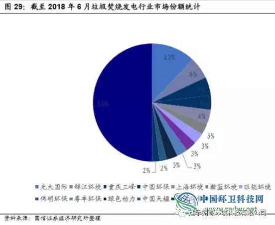 按照生活垃圾處理量計算,截止2018年6月,中國垃圾焚燒發(fā)電行業(yè)CR10僅為46%,行業(yè)競爭較為分散。光大國家、錦江環(huán)境、重慶三峰、中國環(huán)保、上海環(huán)境位列前五。