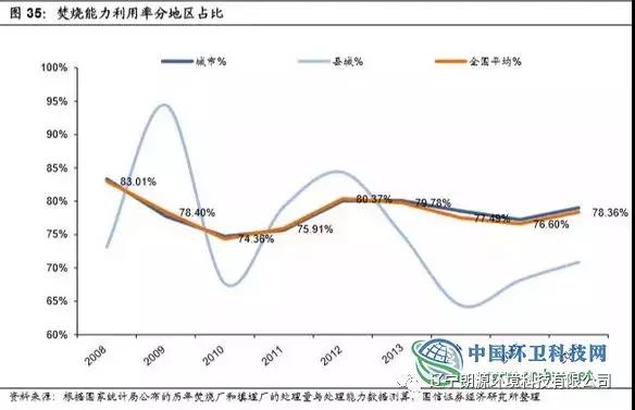 農(nóng)村地區(qū)垃圾處理仍處于初級階段。根據(jù)住建部發(fā)布的《城鄉(xiāng)建設(shè)統(tǒng)計年鑒》,農(nóng)村地區(qū)現(xiàn)每年產(chǎn)生垃圾總量穩(wěn)定在6600萬噸以上,人均垃圾產(chǎn)生量穩(wěn)定處于0.3千克/天的水平。2016年農(nóng)村人口占總?cè)丝诘?3%,農(nóng)村的人均垃圾產(chǎn)生量和垃圾清運比例有巨大的提升空間,所以考慮經(jīng)濟發(fā)展和農(nóng)村垃圾清運比例的提升,我國的垃圾焚燒市場未來空間仍然十分廣闊。