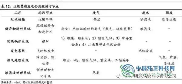 垃圾焚燒發(fā)電流程主要分為垃圾前端收集處理、垃圾發(fā)電以及末端煙氣、爐渣、飛灰處理等。在項目運行過程中,會產(chǎn)生煙氣、滲濾液、飛灰、爐渣等污染物。為減少生活垃圾焚燒造成的二次污染,環(huán)保部公布推出了《生活垃圾焚燒污染控制標(biāo)準(zhǔn)(GB18485-2001)》,替代國家環(huán)境保護總局發(fā)布的《垃圾焚燒污染控制標(biāo)準(zhǔn)(GWKB3-2000)》,并于2014年進行了修訂。