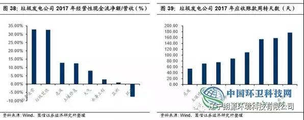 垃圾焚燒發(fā)電行業(yè)的項目屬于運營類資產(chǎn),項目投運之后每年可以獲得穩(wěn)定的垃圾處置收入和電費收入,因此現(xiàn)金流情況良好。與環(huán)保其它板塊相比,垃圾焚燒發(fā)電行業(yè)2018年經(jīng)營性現(xiàn)金流/營業(yè)收入比例為32.57%,在環(huán)保所有子行業(yè)中位列第二,僅次于水務(wù)運營行業(yè)。從應(yīng)收賬款周轉(zhuǎn)天數(shù)來看,垃圾焚燒發(fā)電行業(yè)2017年周轉(zhuǎn)天數(shù)為76天,在環(huán)保所有子行業(yè)中排名第三,僅次于危廢和土壤修復(fù)行業(yè),應(yīng)收賬款周轉(zhuǎn)較快。